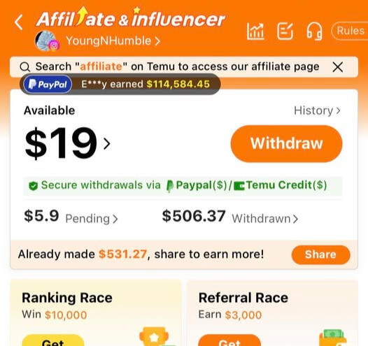 ✔️ Every "make money fast" scheme you've tried was a scamWell, pay attention, because I'm about to break down EXACTLY how I'm making real money with Temu's affiliate program - no experience needed, no special skills required.PART 1: WHY THIS ACTUALLY WORKSTemu is the fastest growing shopping app in America (Temu spent $21 MILLION on Super Bowl ads). They're handing out affiliate commissions like candy because:They want to beat Amazon